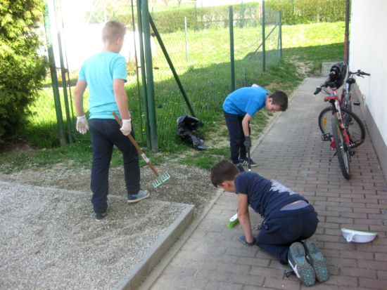 Vsak razred je bil zadolžen za urejanje določenega šolskega območja. Med glavnimi opravili je bilo tudi pobiranje smeti, ki se jih žal, vse preveč nabere okrog naše šole in v bližini košev. A ker imamo radi lepo, smo bili pri čiščenju zelo natančni in vztrajni.