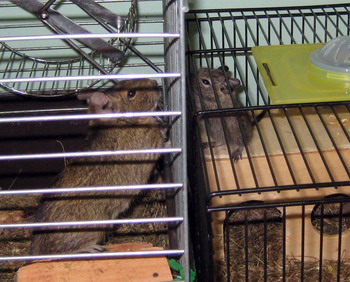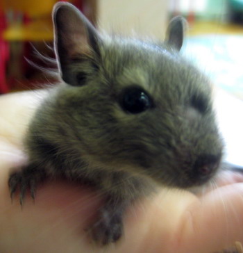 " Mami! Kdaj bom lahko prišla k vama?" " Ne bodi no tako nestrpna, miška moja. Saj sama veš, da moraš še malo zrasti! " Moja mami me še vedno kliče "miška", čeprav sem čisto nekaj drugega. Če te zanima karkoli o nas, degujih, se lahko sprehodiš po naslovu: http://www.degus.org/ |