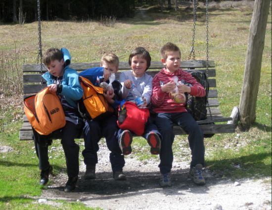 Po kosilu smo se preizkusili v orientacijskem pohodu. Razdeljeni v skupine smo iskali pot in na postajah reševali naloge. Obiskal nas je pletar Jože in nas učil plesti košare. V mraku smo si v gozdu ogledali še predstavo o palčku in medvedu.