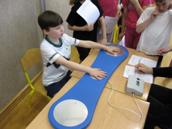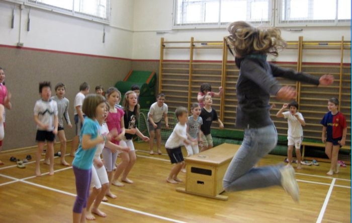 dotikanje plošče z roko. Tudi visenje mi je dobro šlo. (Staš Popijal)