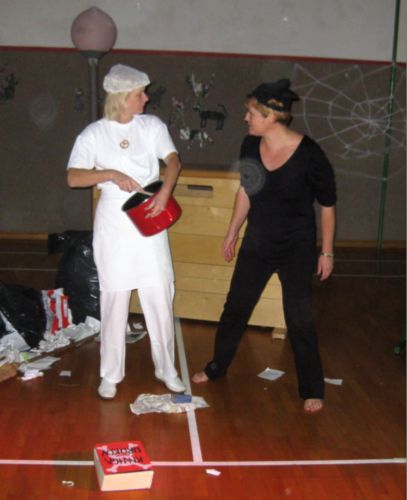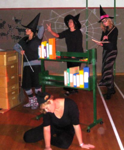 skupaj obljubil, da postane čarovniški muc vseh čarovničk v telovadnici.