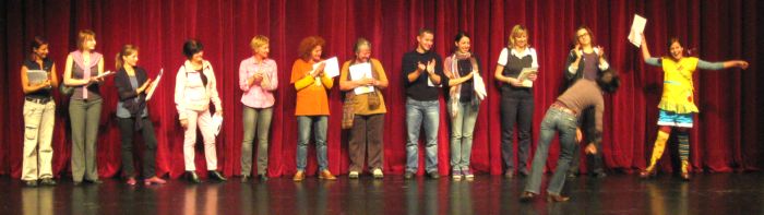 nas je kmalu popeljala na pravi oder, prostoren, z odrskimi lučmi, stranskimi
