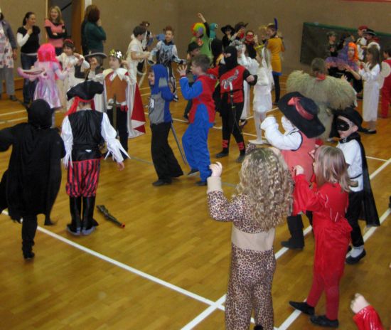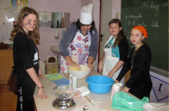 našem pustovanju so za krhke flancate poskrbeli petošolci z učiteljicama Eriko