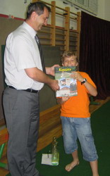 Župan je čestital odličnim učencem in jih nagradil z lepo knjigo.