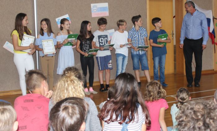 V šolski telovadnici, okrašeni s slovenskimi zastavami, ki so jih narisali vsi učenci naše šole, smo obeležili dan državnosti. Po slovenski himni je spregovoril župan občine Kungota, gospod Igor Stropnik, ki je med drugim petošolcem zaželel uspešno nadaljevanje šolanja v matični šoli, osmim petošolcem pa podelil priznanja za najboljše učne dosežke v vseh petih letih šolanja. Priznanja in knjižne nagrade so prejeli Aisha Blakaj, Aljaž Hauptman, Jan Jurgec, Maša Madžarac, Jaša Marko, Ema Raner, Patrick Rožič in Lejla Žilavec.