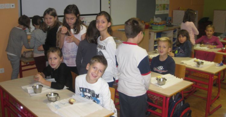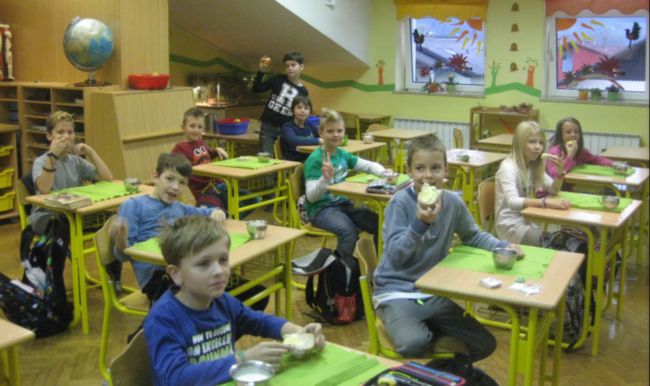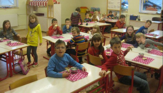 7.30 uri so se v svojih matičnih učilnicah zbrali učenci od 1. do 5. razreda. Zajtrkovali