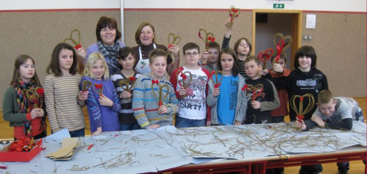 4. razred je izdeloval velika srca, srca v srcu in prav
