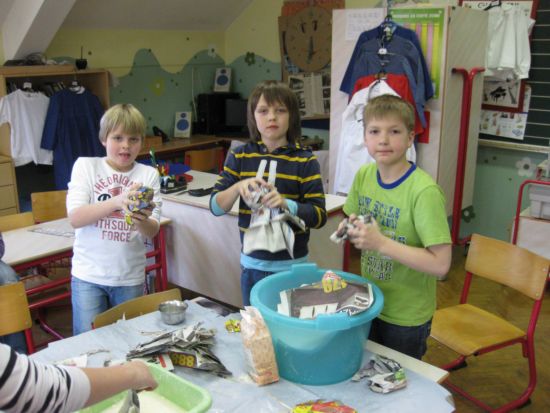 zelo lepo, zato sem najprej zmečkal papir. Potem smo skupaj zmešali moko in