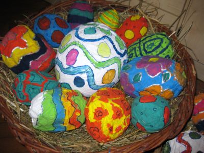 na zmečkan papir in oblikovali jajca. Potem smo jih posušili in pobarvali.
