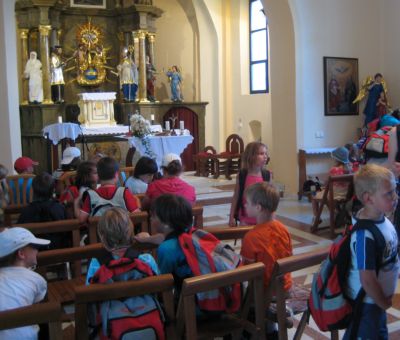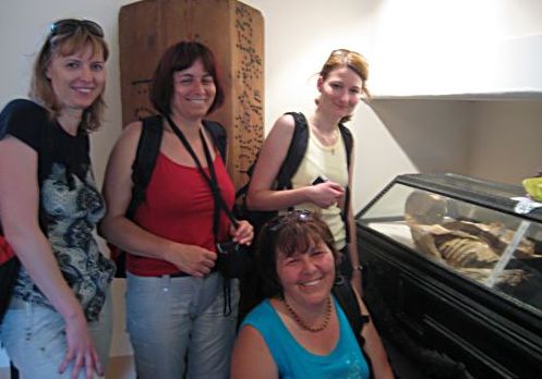 Pred kapelico, v kateri je mumija pogumnega vojščaka Hadika, smo nagradili zavzete raziskovalce, ki so o tem vojščaku in Lendavi izbrskali največ zanimivosti, nato pa nas je prijazen vodič popeljal v prijetno hladno notranjost kapelice.
