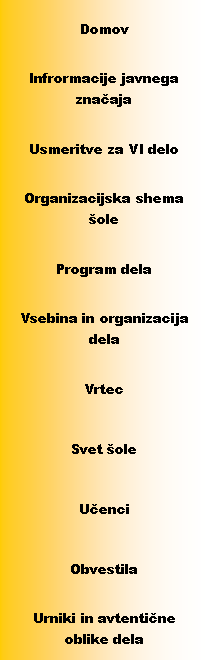 UČITELJ ZADOLŽEN ZA UČILNICO OZ. KABINET Jožica Rep, 1. učilnica (11) Milena Petek, Milena Korpar M. igralnica 9-letke v vrtcu Pepca Kupčič 2. učilnica št. 12 Zdravko Majcen mala zelena št. 18 kabinet št. 26 Zvonka Lalič gospodinjska učilnica št. 8 Danica Petek mala modra učilnica št. 6 Jožica Rakuša naravoslovna učilnica št. 23 kabinet št. 23 Irena Korenčič nemška učilnica št. 7 Sonja Rajh nemška učilnica št. 7 kabinet št. 24 Kristina Hekić matematična učilnica št. 25 Herman Prejac telovadnica galerija št. 9, kabinet št. 8 Drago Slavinec računalniška uč. št. 16, tehniška učil. št. 5 Marijan Putanec, |