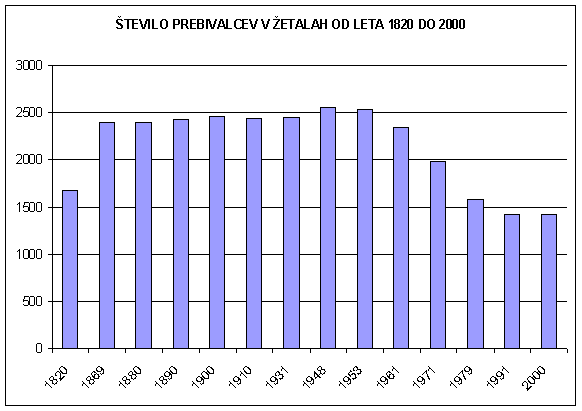 ŠTEVILO PREBIVALCEV V ŽETALAH OD LETA 1820 DO 2000