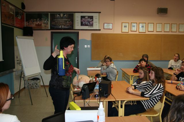 V torek, 11. februarja, je bil mednarodni dan številke 112 in dan predstavitve prve pomoči. Učenci s predmetne stopnje smo bili seznanjeni s pravilno uporabo številke 112 in imeli smo si priložnost ogledati postopek oživljanja. Gospa z URSZR nam je predstavila telefonsko številko 112. Povedala nam je tudi, v katerih primerih lahko pokličemo na to številko. Nato smo si še ogledali postopek oživljanja, predstavila nam ga je ga. Edith Sapač Žižek, dr. med.. Tudi učenci smo lahko poskusili oživljati. Oživljali smo tako, da smo ponesrečencu najprej dvignili glavo, nato je sledila še masaža srca in dva vpiha. Ura prve pomoči je bila namenjena temu, da bi se mladi naučili postopka oživljanja ob nujnih primerih.
