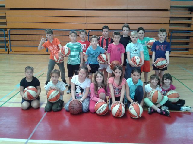 Različne oblike košarkarskih tekem smo odigrali tudi na naših treningih. Večina učencev in učenk s fotografije pa bo s košarko nadaljevala tudi v prihodnjem šolskem letu.