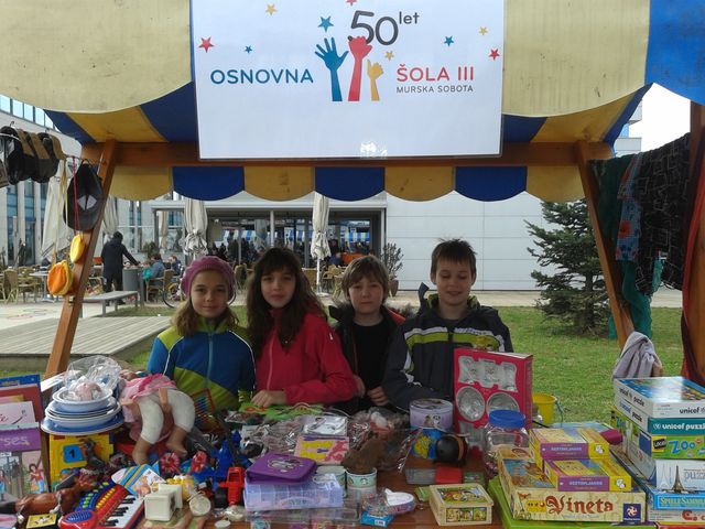 V soboto, 28. 3. 2015, se je na Trgu kulture v Murski Soboti zgodil zdaj že tradicionalni Dan za spremembe – dobrodelni bazar, na katerem smo s svojo stojnico poleg ostalih šol in vrtcev ter drugih nevladnih organizacij sodelovali tudi mi. Učenci in učitelji so namreč cel teden prinašali stvari, od igrač, iger, oblačil, knjig, posod, torbic, nahrbtnikov, pripomočkov za dom …in vse to smo ponujali na naši bogato obloženi stojnici. Letos je bil bazar veliko bolje obiskan kot lansko leto, obiskovalci pa so na stojnicah kupovali ponujeno za simbolično ceno 0,50 eura. Veliko jih je prispevalo več od tega minimalnega zneska. Ves denar, ki se je zbral od prodaje na bazarju, je šel v šolske sklade soboških osnovnih šol in OŠ Bakovci, zato se vsem in vsakemu posebej za podarjeno še enkrat iskreno zahvaljujemo.