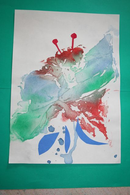 Pri uri likovne vzoje so učenci 4.a razreda izdelali vsak svojo sliko iz odtisa, ki je nastal pri izelavi rutice na naravoslovnem tednu. Rutica se je spremenmila v cvet, odtis pa v pravo umetnijo. Domišliji so pustili prosto pot.