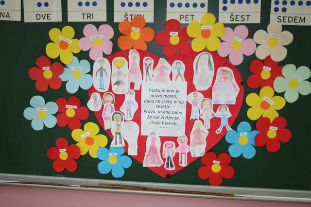 V sredo, 13.03.2013, smo učenci 1.b razreda pripravili kulturno prireditev za mamice. Predstavili smo se jim s pomladnimi recitacijami, dramatizacijami, zapeli nekaj pesmic o mami in zaplesali. Mamam smo izročili pomladni šopek, ki smo ga naredili sami. Mame so nas s ponosom spremljale in povedale, da smo jim polepšali popoldan.