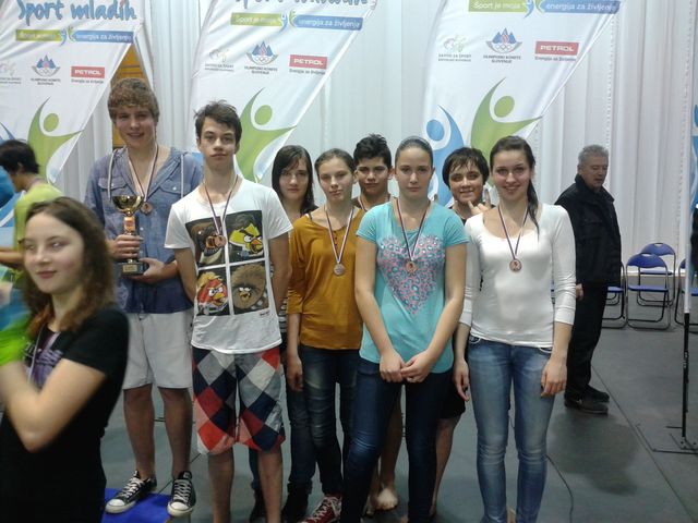 Plavalci in plavalke naše šole so na finalu državnega prvenstva, ki je bilo pretekli petek v Ribnici, dosegli izjemen uspeh. Plavalna štafeta, ki je s svojim rezultatom že na področnem prvenstvu zmagala z veliko prednostjo pred ostalimi pomurskimi šolami, je na finalu v Ribnici osvojila bronasto medaljo. To je prva medalja v zgodovini naše šole in letošnja edina med pomurskimi osnovnimi šolami. Za ta izjemen uspeh so zaslužni naslednji učenci: Lan HORVAT KOVAČ, Tadej BERCE, Luka OBAL, Žak SOVEC, Lana LANG, Maruša KOVAČ, Zarja KOVAČ ŠARČEVIČ in Urška FEHER. Med posamezniki je Lan HORVAT KOVAČ osvojil 7., Tadej BERCE pa 9. mesto. Pri deklicah je Lana LANG na koncu osvojila 16., Urška FEHER pa 18. mesto.