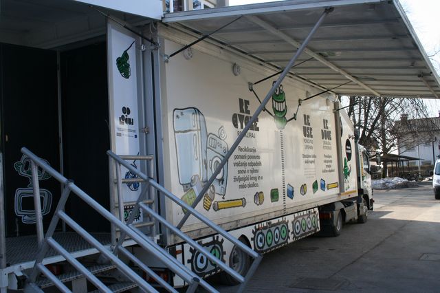 TIAN: Bili smo v vozilu, ki se imenuje E-transformer. V tem vozilu smo si ogledali film, ki govori o ločevanju odpadkov.