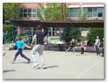 MED DVEMA OGNJEMA Med igrami na igrišču imamo najraje "med dvema ognjema". Še posebno je zanimivo, ko z nami zaigrata tudi gospa Karolina in gospod Marko. Vsak v nasprotni ekipi seveda.