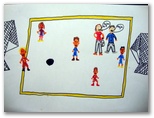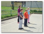 NA IGRIŠČU Na spomladanske deževne dneve smo skozi okno opazovali sive oblake in dežne kaplje in se spominjali popoldnevov v podaljšanem bivanju, ki jih imamo najraje - ko sije sonce in se lahko brezskrbno igramo na igrišču.