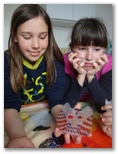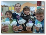 "SHRINK PLASTIC" Te dni smo bili v podaljšanem bivanju pravi čarovniki. Na posebno skrčljivo plastiko smo s flomastri narisali različne vzorčke, živali, ... Oblikovali smo jih v obeske, uhančke, broške. Gospa Kobal nas je opozorila, da se bo plastika skrčila, vendar take spremembe vseeno nismo pričakovali.