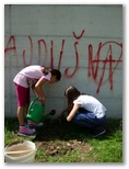 SONČNICE Ko smo go. Karolino vprašali, zakaj bomo posadili sončnice, nam je vrnila z vprašanjem "Zakaj pa sadimo rože?". In tako smo jih posadili - zato, da bi nam polepšale okolico. Nekaj sadik so polomile neprijazne roke, nekaj jih je nevede pokosila kosilka, nekaj pa jih pridno raste in upamo, da bodo polepšale pust betonski zid.