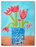 na prvih pomladnih cvetočih vejicah postavili na razstavo.