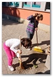 Vsi se bolje počutimo v čistem in urejenem okolju. Prvošolci in drugošolci se zavedamo, da smo sami dolžni poskrbeti za prostor okoli nas. Doma pospravljamo svoje sobice in pomagamo staršem urediti stanovanje ali okolico hiše, v šoli pa poskrbimo za urejenost svoje učilnice in garderobe, ter okolice, kjer se igramo. V šolskem parku smo 17. oktobra izvedli pravo čistilno akcijo. Očistili smo igrala, pometli tlakovana tla, pograbili in vrnili kamenčke na svoje mesto, pobrali smeti, očistili in olepšali cvetlična korita, na koncu pa uživali v igranju v urejeni in zato prijetni okolici!