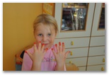Naši mali ustvarjalci so popoldan v podaljšanem bivanju preživeli kot čisto pravi slikarji. Podobno kot tetka jesen so zavihteli čopiče in na risalnih listih pričarali barvit jesenski vihar.