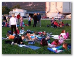 NOČNO RAZISKOVANJE Četrtošolci smo imeli 20. septembra, ko je bil svetli del dneva še precej dolg, čisto poseben naravoslovni dan. Zakaj je bil tako poseben? Najprej zato, ker se je začel šele popoldne. Ob 16h smo se zbrali na šoli v Lokavcu, kjer smo se pogovarjali o vesolju, zvezdah, planetih, sencah … Otroke je tema zelo zanimala in z veseljem so pred šolo risali svoje sence ter nato opazovali, kako so se le te s časom spreminjale. Z navdušenjem so se odpravili v klet in ugotovili, zakaj predmete sploh vidimo, zakaj je senca enkrat večja, enkrat manjša ter čemu je podoben odboj žogice. Ogledali smo si računalniško predstavitev o vesolju ter si s pomočjo starega trika poskušali zapomniti imena luninih men. Nato smo si oprtali nahrbtnike z baterijskimi svetilkami, ogledalci, pisali, delovnimi listi, daljnogledi in se z ležalnimi podlogami v rokah odpravili staršem, ki so nas že čakali, naproti. Dan je bil torej poseben tudi zato, ker so otroci aktivnosti opravljali skupaj s starši in v družbi vseh četrtošolcev naše šole. Starši so nam priskočili na pomoč že v Lokavcu, saj so svoje otroke peljali do parkirišča ob tovarni Lipa. Tam smo se srečali s četrtošolci iz Ajdovščine, se posedli po travi in opazovali zahod sonca. Ogledali smo si barv in nekaterim je uspelo izmeriti, koliko časa je sonce potrebovalo, da je popolnoma izginilo za obzorjem. In ko se je znočilo, nismo še šli domov! Namesto tega smo si na glave nadeli baterijske svetilke, s pomočjo dveh teleskopov raziskovali nebo, iskali rimsko cesto, mali in veliki voz, zvezdi Severnico in Večernico ter še marsikaj. Starši so budno spremljali svoje otroke, ter njim in učiteljem priskočili na pomoč, ko je bilo to potrebno. Vztrajali smo, dokler ni postalo že precej hladno in nato zadovoljni odšli na svoje domove. Bilo je lepo, to druženje staršev, otrok in učiteljev. Hvala!