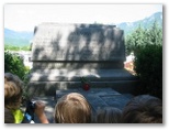 Del programa je bil izveden v Lokavcu, del pa v Ajdovščini. Najprej smo se seznanili z življenjem in delom Danila Lokarja. Ogledali smo si šolski časopis s prispevki učencev od 1. do 9. razreda in ponatisnjeno knjigo Srnjaček, ki so ga ilustrirali učenci. Potem smo se z avtobusom odpeljali v Ajdovščino na šolsko proslavo ob tem jubileju. V programu so nastopali tudi lokavški učenci s prizori dogodivščin na poti v šolo in domov. Po predstavi smo si ogledali rojstno hišo Danila Lokarja in razstavljene izdelke nekdanjih učencev. Ogledali smo si tudi Pilonovo galerijo in razstavo o Srnjačku ter filatelistično razstavo. Ob vrnitvi smo se ustavili tudi na pokopališču, ob grobnici Danila Lokarja in prižgali svečko. |