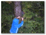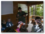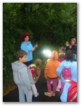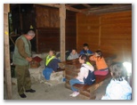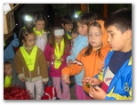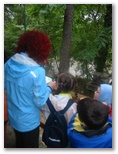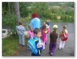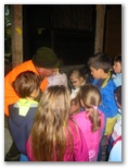 Na cilju sta nas že čakala lovec Miroslav Troha in profesorica biologije Jasmina Černigoj. Lovec nam je veliko povedal o živalih in o delu lovcev. Pokazal nam je tudi trofeje, lovsko opremo in knjige o živalih. Z Jasmino smo na sprehodu po gozdu spoznavali različne gozdne rastline in živali. Sredi gozda smo si izbrali hrast in izdelali njegovo "osebno izkaznico".