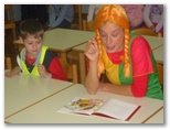OBISKALA NAS JE PIKA NOGAVIČKA Ojoj, kaj počne Pika Nogavička v knjižnici! Knjižničarka Nataša nam je tokrat v goste pripeljala Piko Nogavičko, ki tudi rada zahaja v knjižnico, a tam pogosto počne čudne reči. Videli smo, da takšno obnašanje res ne sodi med knjige, zato smo sklenili, da se bomo mi v knjižnici obnašali tako, kot je treba. |