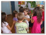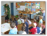 S tetko Jesen so učenci zapeli pesem o jeseni. Učencem je prinesla jabolka in grozdje, skupaj so se dogovorili, da bodo vsak dan namesto sladkarij raje pojedli eno jabolko ali katero drugo sadje.