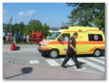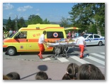 Junija smo se deležili preventivne akcije: Igrajmo se varnost. Potekala je v Šturjah okrog stare vojašnice in šole. Učenci so videli prikaz prometne nesreče, pomoč ponesrečencu, prikaz reševanja iz goreče stavbe, seznanili smo se z delom vseh služb za pomoč pri naravnih in drugih nesrečah. Ogledali so razne pripomočke in naprave, ki jih pri delu uporabljajo. Poizkusili so se v varni vožnji, v reševanju v gorah in se seznanili s pomočjo psov pri raznih nalogah in drugim. |