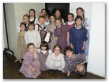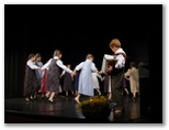 SREČANJE OTROŠKIH FOLKLORNIH SKUPIN V sredo, 1. 4., smo se učenci, ki obiskujemo interesno dejavnost ljudski plesi, udeležili srečanja otroških folklornih skupin. Srečanje je tako kot lani potekalo v Tolminu. Predstavili smo se s spletom Na dvorišču: Na dvorišče pride fant s harmoniko in si eno zaigra. Štiri deklice, ki so se vračale s travnika, kjer so grabile seno, se mu pridružijo. Poiščejo si vsaka svojo leseno palčko in ob harmoniki zaigrajo na grabljice. Na dvorišče pritečejo še ostali otroci, ki ob glasbi zaplešejo, se igrajo igro ristanc in na različne načine preskakujejo grabljice. V spletu smo poleg starih iger predstavili otroško zbadljivko (Kej pa delaš?) ter tri plese (trzinka, rašplja in štajeriš). Z diatonično harmoniko nas je spremljal Miha, tretješolec naše šole. Strokovna spremljevalka srečanja je bila gospa Metka Knific, ki je po srečanju mentorjem skupin podala strokovno oceno in napotke za nadaljnje uspešno delo.