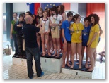 Plavanje - finale v Mariboru Dan po rokometnemu finale, torej v petek, 17.4. je odšla na Štajersko, točneje v Maribor ekipa naših plavalcev. Ariana Arifi, Nina Skočir, Rebeka Praček, Katja Premrl, Franko Bajc, Timotej Lemut, Jaka Močilnik in Rok Brecelj, so se pomerili najprej v posameznih tekmah in nato še v štafeti 8 x 25 m prosto. Veliko preplavanih dolžin v Ajdovskem bazenu v letošnjem šolskem letu se je obrestovalo. Štafeta štirih fantov in štirih deklet je osvojila tretje mesto v državi, za plavalnimi šolami iz Cerknega in iz Lucije. Prav tako sta si odlično uvrstitev priplavali Ariana Arifi z četrtim in Nina Skočir z osmim mestom v disciplini 50 m prosto. Pohvale vsem tekmovalcem letošnjega finalnega nastopa v Mariboru.
