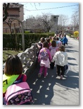 Prvošolci smo se 18. marca odpravili na pohod. Šli smo iskat pomlad. Iskali smo jo po mestu, na njegovem obrobju, v gozdu. Ni nas razočarala. Našli smo jo v toplih sončnih žarkih, ki so nas prijetno greli, v popkih in cvetovih na drevju, v trobenticah, vijolicah, jetrniku, v ptičjem petju in urejenih vrtovih okoli hiš.