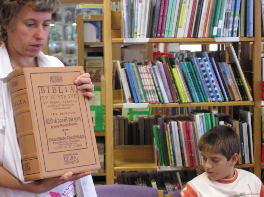 da hranijo v knjižnici Biblijo iz leta 1584, ki jo je kupil in knjižnici