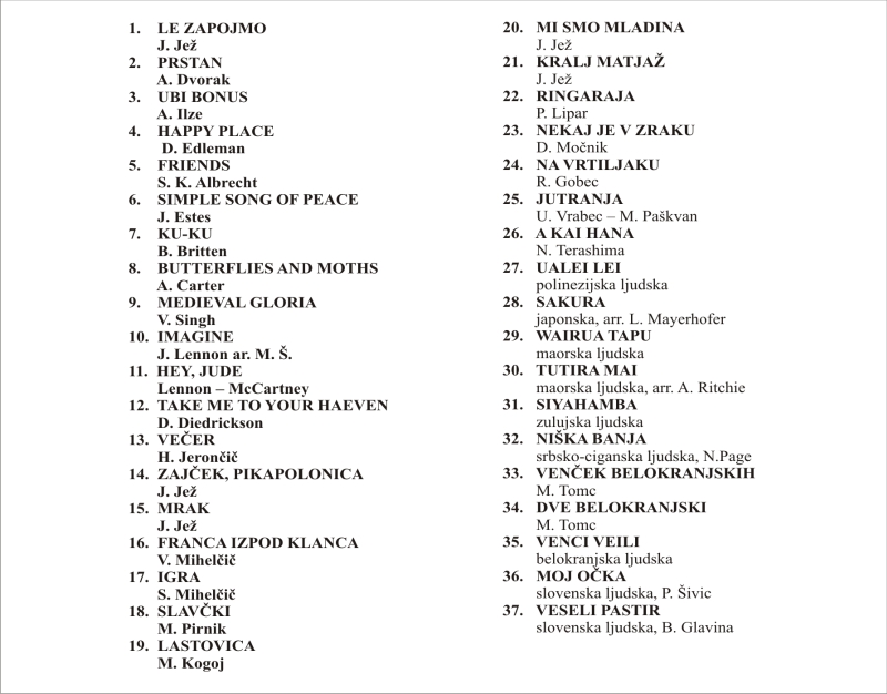 Naj »mavrične« pesmi, ki so rezultat navdušenega in pridnega dela pevcev in pevk odplujejo v svet in dolgo zvenijo v srcih in ušesih.
