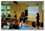 V stopničasti učilnici so se zbrali učenci od 5. razreda osemletke do devetošolcev. Srečanje z gostoma je trajalo dobro šolsko uro. V uvodu so si pogledali videospot z naslovom Od ljudi za ljudi. Gostoma so na kratko predstavili našo šolo in projekt v katerem so sodelovali.