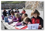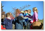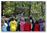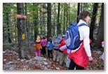 NARAVOSLOVNI DAN »GOZD« Nato smo se odpeljali proti Športnemu parku Tiha dolina, kjer smo v večnamenskem prostoru pomalicali. Z gozdarsko inženirko Egidijo, gozdarjem Dušanom in zeliščarko Marjetico smo se odpravili v gozd. Ena skupina je na sprehodu skozi gozd opazovala rastlinje, poslušala o živalih in gozdnem bontonu, druga pa spoznavala zelišča in jih nabirala za čaj, ki ga bomo skuhali v šoli, ko se zelišča posušijo. Ob jami Ledenici smo se skupini srečali, si ogledali vhod v jamo in se zamenjali. Gozd smo doživljali z vsemi čutili; ga vonjali, okušali, poslušali, gledali, otipali. Po sprehodu smo se okrepčali s toplim čajem, da smo lažje počakali na odlično kosilo. Po kosilu smo se sproščali s športnimi igrami na košarkarskem in nogometnem igrišču. Najbolj pa nam je bila všeč dolinca, po kateri smo se veselo kotalili in pridobili na naših oblačilih nemalo zelenih lis. Po kosilu smo si ogledali diapozitive gozdnih živali in se o njih marsikaj novega naučili. Obiskal nas je lovec Jurij in nam predstavil, kaj vse počnejo lovci, kako skrbijo za ravnovesje v naravi, kakšna je njihova oprema in nam dovolil pokukati skozi njegov daljnogled ter prijeti njegovo puško v roke. Na koncu nam je še pokazal, kako natančno strelja njegova puška. Ko nas je lovec Jurij zapustil, smo vse, kar smo do tedaj zvedeli o gozdu zapisali v naše naravoslovne mape. Za konec našega naravoslovnega dne nas je obiskal še gozdar Marko, ki nam je predstavil svoje delo, opremo in nas opozoril na vse nevarnosti, ki pretijo gozdarjem pri njihovem delu. Skupaj smo se vrnili v gozd, kjer nam je pokazal, kako se podere drevo, ki je označeno za posek, mi pa smo pridno pospravili vse razžagane veje in ostale dele drevesa. Ko smo se vrnili v športni park, so nas tam že pričakali starši, s katerimi smo s pomočjo slik in pripovedovanja ponovno doživeli naš prečudovit dan. Po napornem delu v gozdu nas je pričakala še prava kmečka večerja; polenta z ocvirki ter domače kislo mleko. Skupaj starši smo se okrepčali in se odpravili nazaj proti domu. Želimo si še več takih naravoslovnih dni, saj nam je bilo v gozdu zelo lepo. Posebej pa bi se radi zahvalili ga. Marjetici Stopar, brez katere tako pestrega in zanimivega dne ne bi bilo. Všeč mi je bilo, da smo bili v naravi. Videl sem veliko zanimivih stvari. Spoznal sem ljudi, ki skrbijo za red v gozdu. Veliko sem se naučil o zeliščih in kako jih uporabljati. Name je največji vtis naredil lovec, gospod Jurij. Pokazal nam je puško in razložil, kako se jo pripravi za strel. Ko je ustrelil, je počilo. Zelo všeč mi je bila hrana. Po napornem dnevu je bil nogomet odlična sprostitev. Žan Pergar 3.a Tilen Ožbot 3.a Iza Kranjc 3.a Nejc Hočevar, 3.b Hana Vanzetta, 3.b Ema Batagelj, 3. b |