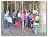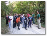 Po malici smo se razdelili v dve skupini. Najprej sta nas prijazna gozdarja g. Dušan in g.Vojko peljala po gozdu. Povedala sta nam veliko zanimivosti o živalih, ki živijo v naših gozdovih. Tudi medveda sta že srečala. Natančno smo opazovali mravljišče ob cesti. Spoznali smo veliko dreves in njihovih plodov. Poskusili smo žir, ki ga je letos ogromno. Videli smo tudi vhod v jamo Ledenico, iz katere so včasih prevažali led v Trst.