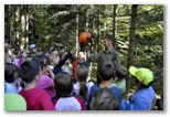 Ob vhodu v velik in lep šotor se je točil slasten zeliščni čaj. Predstavitev se je začela s plesom in pesmijo. Učiteljice so celotno dogajanje tega dne fotografirale in ob našem prihodu že pripravile projekcijo dogajanja. Ob fotografijah so otroci pripovedovali, kaj vse so doživeli. Obiskali so jih: gozdna inžinirja, lovec in gozdar. Gozdar je požagal drevo z motorno žago. Za kosilo so pripravili »pašto« in po pripovedovanju in slikah sodeč ni bilo potrebno nobenega siliti k jedači. Dan v gozdu je vseboval tudi seznanitev z bontonom v gozdu - zelo potrebna in zanimiva tema.