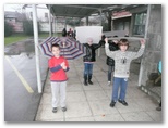 PADALA. Bilo je super! Tekali smo z odprtimi in zaprtimi dežniki in