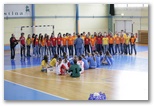 Državne prvakinje v rokometu Mlade ajdovske rokometašice so letošnje osnovnošolske državne prvakinje v rokometu. Na finalnem turnirju, ki se je v četrtek, 14. aprila, odvijal v športnem centru Police v Ajdovščini, so namreč v treh tekmah zabeležile tri zmage in dvignile pokal za prvo mesto. Drugo mesto je zasedla OŠ Brežice, tretje OŠ Dragomirja Benčiča Brkina Hrpelje, četrta pa je bila OŠ Mihe Pintarja Toleda Velenje. Zaključni turnir letošnjega osnovnošolskega rokometnega tekmovanja za dekleta je bil pravi rokometni praznik. Ajdovska osnovna šola se je namreč v dekliški finale uvrstila po skoraj dveh desetletjih suše, zato so se pri organizaciji še posebej potrudili, svoje pa so dodali tudi navijači vseh štirih ekip, ki so do zadnjega kotička napolnili dvorano na Policah in ustvarili peklensko vzdušje. V takih razmerah so se najbolje znašle domačinke. Kot pritiče finalnemu turnirju je o naslovu odločala zadnja tekma v kateri so Ajdovke po nekoliko slabšem začetku v drugem polčasu le strle odpor Hrpeljk. Slednje so zaradi slabše gol razlike zasedle tretje mesto, druge so bile Brežičanke, četrte pa Velenjčanke. Sicer pa so dekleta v finalu državnega rokometnega prvenstva za osnovne šole prikazala lepe predstave z veliko borbenosti. O tem so si bili edini tudi trenerji ki so za najboljšo posameznico turnirja izbrali Kajo Šiškovič (Hrpelje), najboljša strelka je bila z 21 zadetki Maja Svetik (Ajdovščina), najboljša vratarka pa Anja Bratina (Ajdovščina). Mesto v idealni sedmerki finala sta si prislužili tudi naši Ivana Polanc in Anamarija Božič. Rezultati: OŠ Danila Lokarja : OŠ MPT Velenje 13:9, OŠ DBB Hrpelje : OŠ Brežice 15:15, OŠ Danila Lokarja : OŠ Brežice 10:8, OŠ DBB Hrpelje : OŠ MPT Velenje 18:17, OŠ MPT Velenje : OŠ Brežice 12:14, OŠ Danila Lokarja : OŠ DBB Hrpelje 16:12