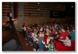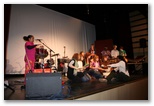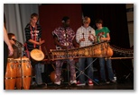 Koncert skupine Rhythm Xing V sredo, 24. 11. 2010, je šola organizirala ogled koncerta skupine Rhythm Xing. Z veseljem smo pričakovali koncert, saj so nam učitelji že pred tem predstavili nenavadno skupino. Sestavljajo jo namreč igralci tolkal iz petih držav: Brazilec, Avstrijca, črnec iz Afrike in mulatka s Kube. Vedeli smo, da bomo z igralci sodelovali in prav to je bilo zame najbolj zanimivo in razburljivo, saj imam rad aktivno udeležbo. Ob prihodu smo na odru zagledali veliko meni neznanih tolkal. Pozornost sta mi pritegnila predvsem afriško tolkalo in zračna kitara. Ob aplavzu so na oder stopili igralci in se v angleščini predstavili. Tako smo izvedeli njihova imena in priimke. Črnec je povedal, da je najmlajši v orkestru ter da ima 45 bratov in sester, saj je njegov oče poročen s 6 ženami. Začeli so z izvajanjem skladb. Najprej so igrali skupaj, potem pa še posamezno. Glasba je bila ritmična, energična, peta in igrana. V ospredju je bila igra na tolkala, ki so bila tradicionalni instrumenti za vsako državo. Črnec je igral afriško tolkalo podobno ksilofonu. Glineno cevko z bučo pod njo je pokrivala ploščica, na katero je udarjal s palicami in s tem iz instrumenta izvabljal tone različnih višin. Igral je tudi afriški boben. Boben je bil velik, držal ga je med nogami s pomočjo naramnic čez ramena in z rokami udarjal nanj. Dekle iz Kube je igrala na lesen polkrožen instrument z držalom, v katerega so bile vpete kovinske kroglice. Podoben je otroški ropotuljici. Instrument je tresla in premikala sem ter tja in s tem izvabljala zvoke. Igrala je tudi zračno kitaro. Podobna je električni kitari, na katero je priključen ojačevalec. Imenovala ga je air guitar. Nanj je igrala kot na kitaro. Zvok je bil podoben električni kitari. Igrala je tudi majhne bobne, na katere je tolkla z rokami. Brazilec je igral 2 bobna. Med njima je štrlela pokončna palica z dvema lesenima deščicama. Udarjal je na bobna in deščici. Peli so v njihovih je jezikih in ib tem igrali na instrumente. Med izvajanjem so nas povabili k sodelovanju. Učenci, ki so želeli, so odšli na oder in igrali na instrumente. Maja je igrala na instrument podoben čutari, pokriti s pladnjem. S krpico je drsala v čutaro po platnu. Zvok, ki je nastal, je bil podoben prdenju, kar me je še posebej navdušilo in razveselilo. Skupina združuje svoje izkušnje, kompozicije, improvizacije in individualne zvočne svetove v skupno izvajanje. Rezultat je svojevrstna, z energijo nabita zmes tolkal in človeškega glasu, ki gre v noge in vabi poslušalce k soizvajanju. Koncert mi je bil zelo všeč, predvsem zaradi interaktivnosti, ritmične glasbe, uporabe nenavadnih instrumentov, zanimivih in drugačnih izvajalcev in nenavadnih zvokov, ki so jih instrumenti oddajali. Glasbo in ogled koncerta sem priporočil staršem z željo, da bi jih razvedril. Jakob Premrn, 9.b