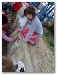 SKUPINSKI MOZAIK V podaljšanem bivanju veliko prostega časa preživimo na zunanjem šolskem igrišču. Nekateri se podimo za žogo, drugi pa smo se odločili, da sive zidove barvno obogatimo. "Preoblekli" jih bomo s čisto pravim mozaikom. To je likovna tehnika, ki zahteva veliko spretnosti in vloženega truda, zato bomo mozaik sestavljali dolgo časa. Obiskovalce igrišča vljudno prosimo, da so obzirni do naših "umetnij" in mozaika sproti ne podirajo.