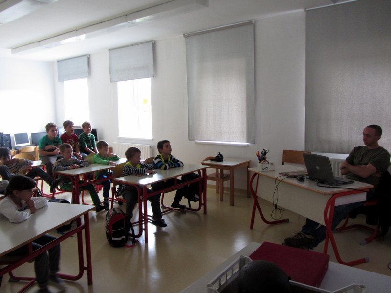 Danes je učence v popoldanskem času obiskal g. Sašo Skok iz Lokvi, zbiratelj predmetov iz 1. svetovne vojne. Na začetku je povedal bistvene podatke o 1. svetovni vojni in se osredotočil na vojno na Trnovski planoti. S pomočjo starih fotografij je nazorno predstavil življenje med vojno. Učenci so ga z zanimanjem